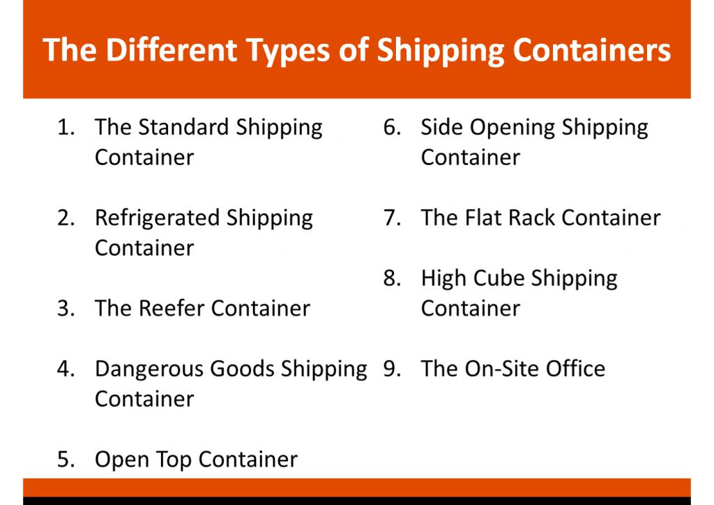 Shipping containers come in many different sizes, shapes and configurations because they are needed for a wide range of purposes. Nearly all of the products shipping around the world are transported inside of a shipping container. If every shipping container were exactly the same, there would be difficulties with shipping certain types of products because the container would not suit the purpose that it was needed for. Just how many different types of containers are there? Each type of container has a specific purpose and the containers that are available meet a wide range of needs of companies as well as after-market uses.